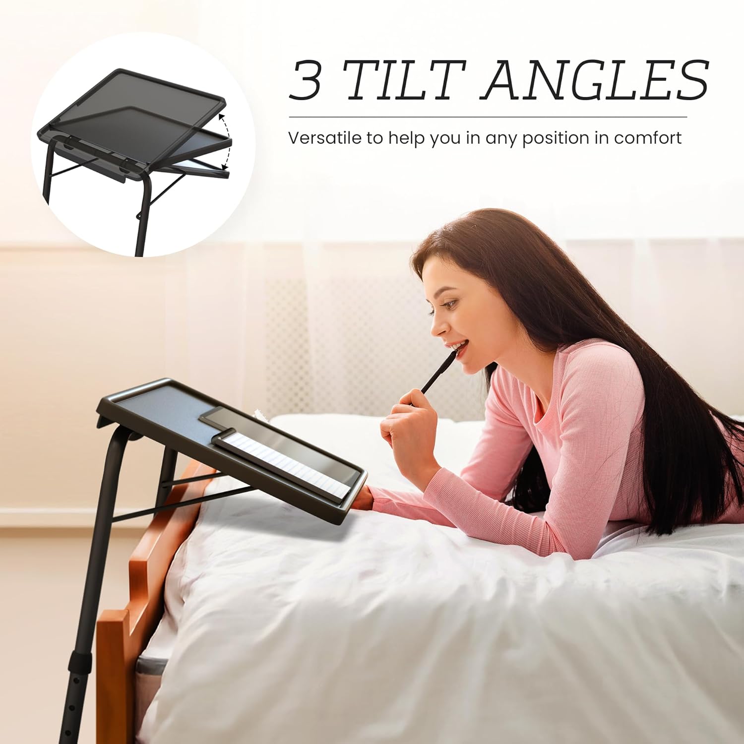 Adjustable TV Tray Table – 6 Height & 3 Tilt Angle Settings